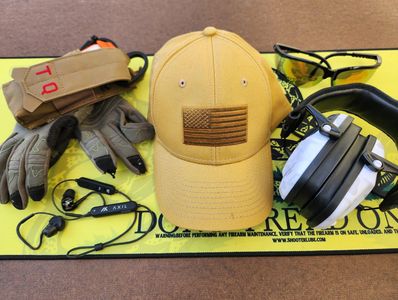 - Hat with brim (deflecting hot brass from getting in safety glasses, and down your shirt)